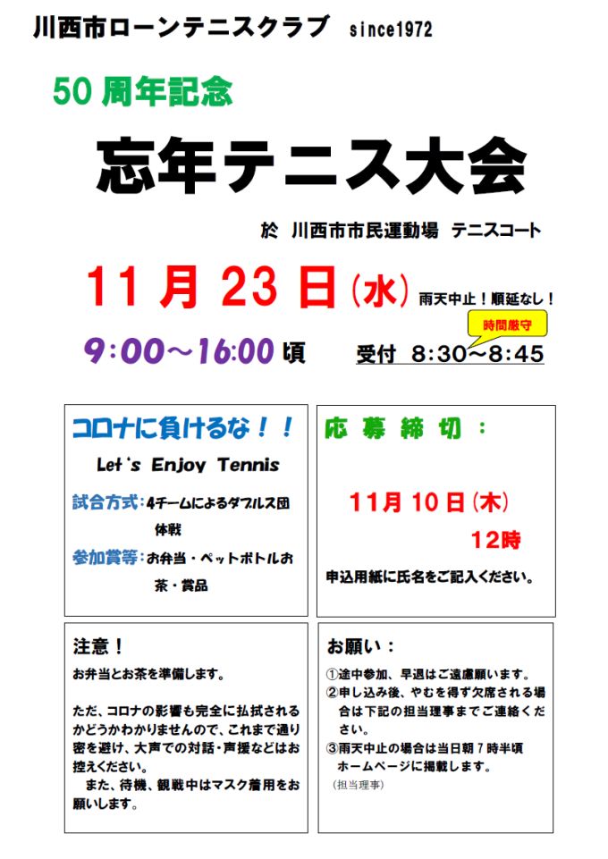 2022年忘年大会のご案内 2022年10月15日 19:48 忘年大会が3年ぶりに開催されます!昨年開催できなかった50周年記念大会も兼ねていますので、たくさんの会員の皆様の参加をお待ちしております。